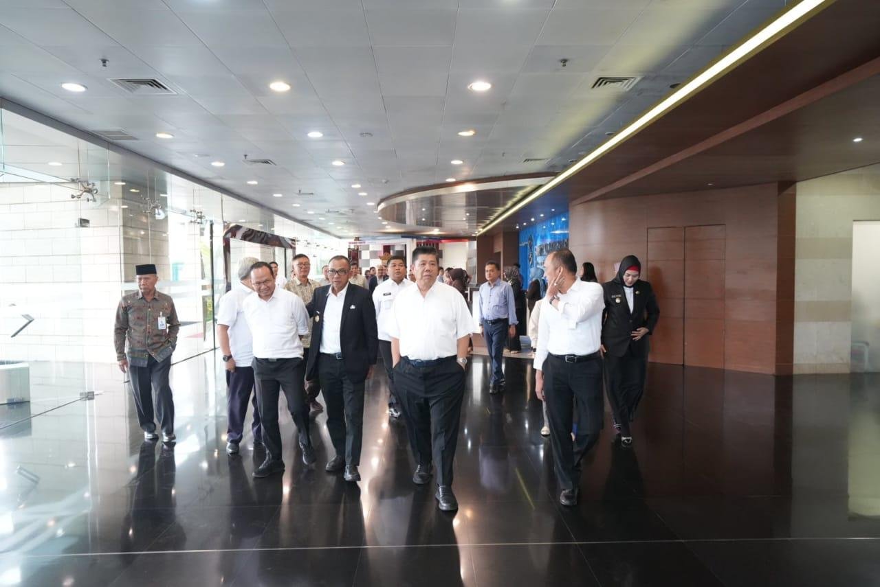 PALEMBANG – Dalam rangkaian kunjungan kerja ke Palembang, Provinsi Sumatera Selatan, Gubernur Kepulauan Bangka Belitung (Babel) Hidayat Arsani menyempatkan diri mengunjungi Kantor Pusat Bank Sumsel Babel, Rabu (10/9/2025). Selain untuk menerima penghargaan dari Badan Kepegawaian Negara (BKN RI), kunjungan ini juga dimanfaatkan sebagai upaya memperkuat sinergi antara pemerintah daerah dan perbankan.