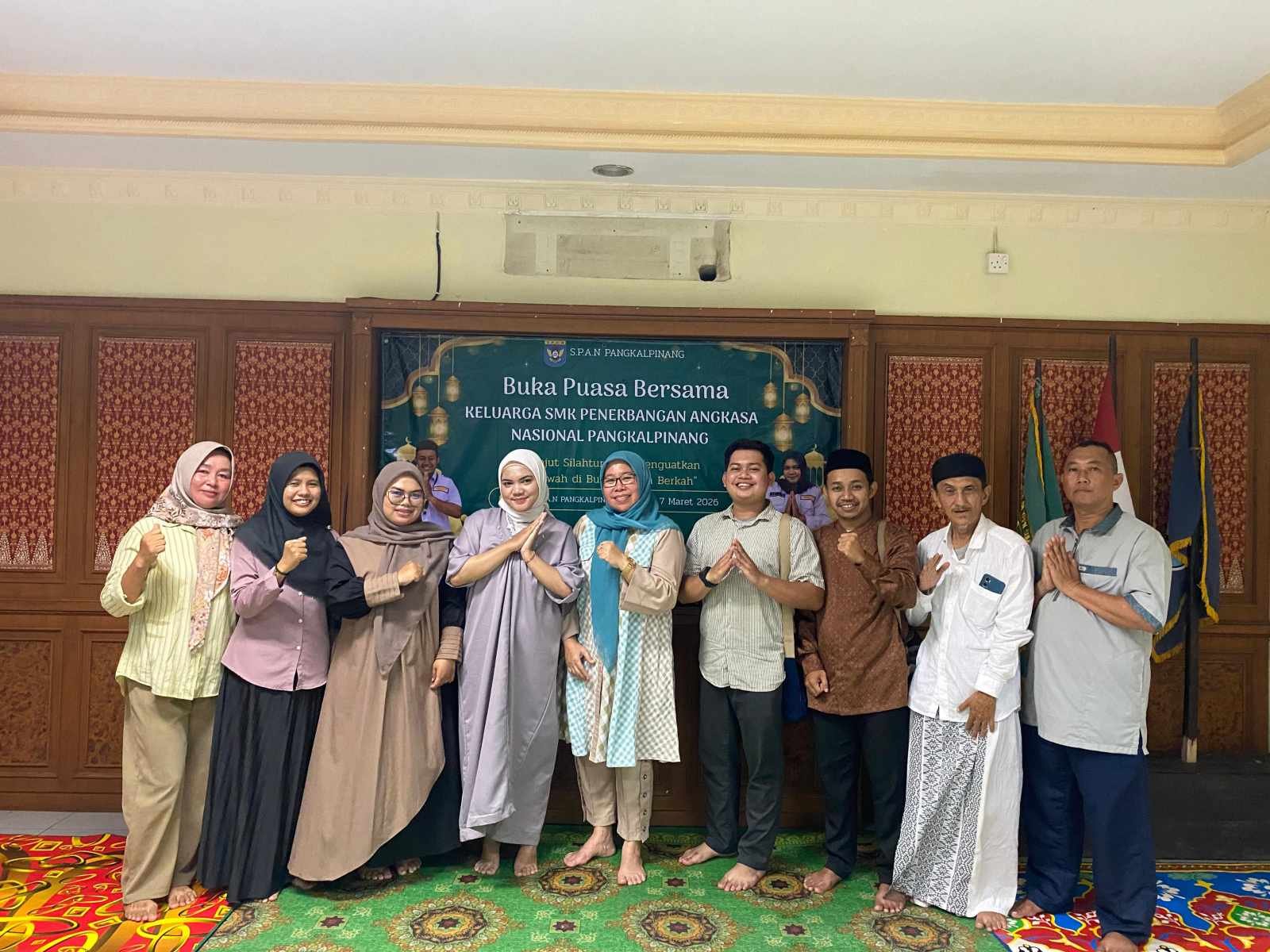 MATAKASUS.COM|PANGKALPINANG — Suasana hangat dan penuh kebersamaan mewarnai kegiatan Buka Puasa Bersama (Bukber) yang digelar keluarga besar SMK Penerbangan Angkasa Nasional Pangkalpinang, Sabtu (7/3/2026). Kegiatan yang dilaksanakan di lingkungan sekolah tersebut diikuti oleh kepala sekolah, pengurus yayasan, dewan guru, staf, serta seluruh peserta didik.