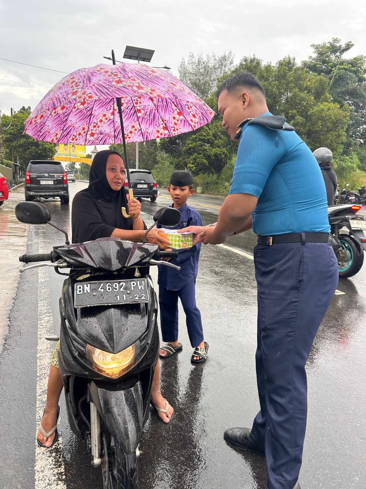 Menjelang waktu berbuka, para taruna bersama guru juga melaksanakan kegiatan sosial dengan membagikan takjil kepada para pengguna jalan di depan Masjid Suprapto, Pangkalan Baru. Kegiatan berbagi takjil tersebut menjadi bentuk kepedulian dan semangat berbagi kepada masyarakat yang masih berada di perjalanan menjelang waktu berbuka puasa.