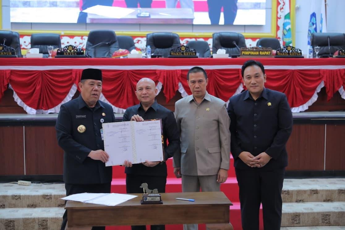 PANGKALPINANG – Gubernur Kepulauan Bangka Belitung (Babel), Hidayat Arsani menghadiri sidang Paripurna DPRD Provinsi Babel yang digelar pada Kamis (28/8/2025). Dalam sidang tersebut, dewan menetapkan tiga rancangan peraturan daerah (Ranperda) menjadi Peraturan Daerah (Perda), yakni Perda Perubahan APBD Tahun Anggaran 2025, Perda tentang Pakaian Adat Daerah, serta Perda tentang Pengelolaan Sampah Regional. Jumat (29/8/2025).