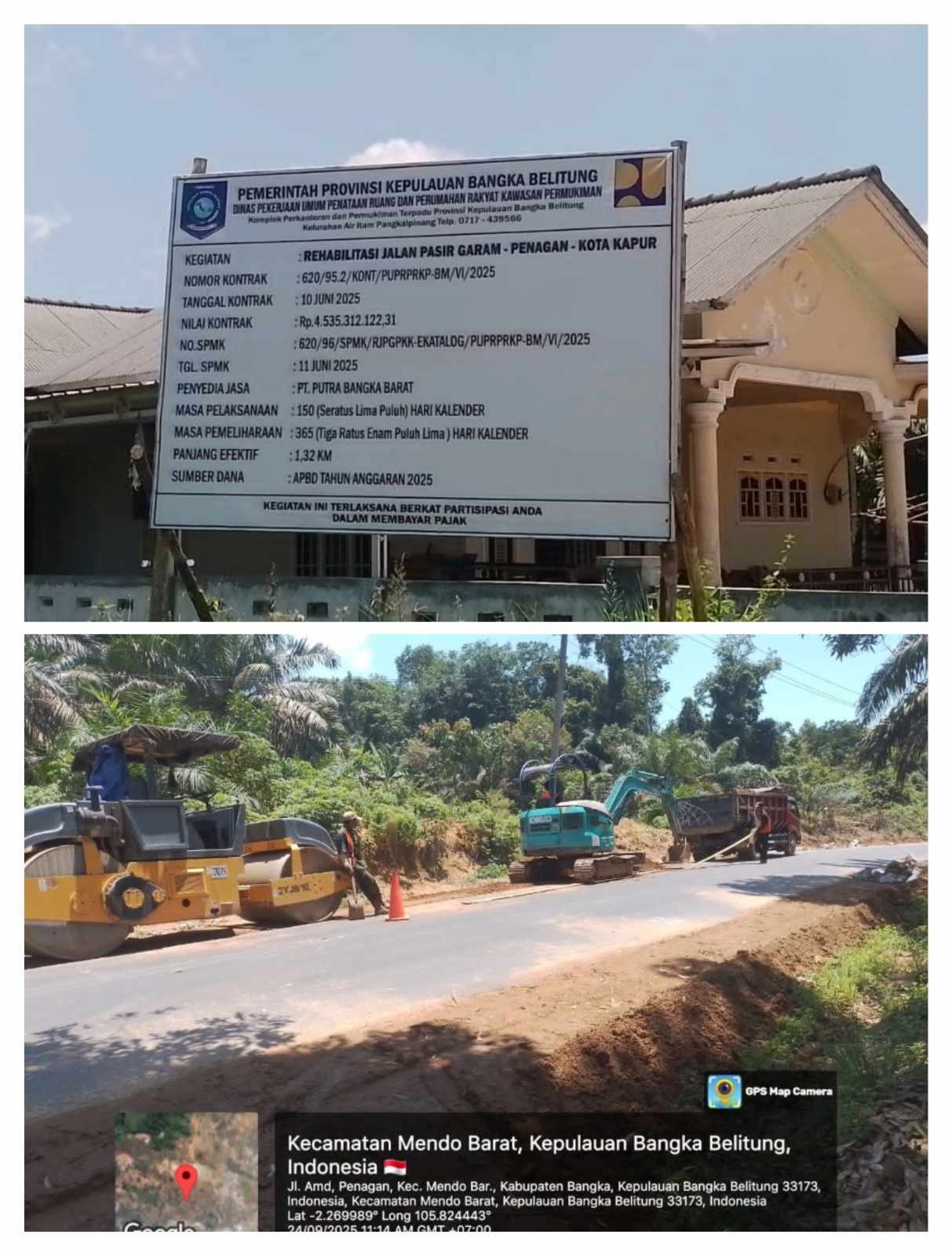 Mendo Barat (Bangka) — Proyek rehabilitasi Jalan Pasir Garam–Penagan–Kota Kapur, yang dibiayai dari APBD Provinsi Kepulauan Bangka Belitung Tahun Anggaran 2025 dengan nilai kontrak mencapai Rp4,5 miliar, kini menjadi sorotan. Meski papan proyek terpampang jelas di pinggir jalan, hasil hasil pantauan awak media mengungkap sejumlah dugaan kejanggalan dalam pelaksanaan pekerjaan. Minggu (5/10/2025).