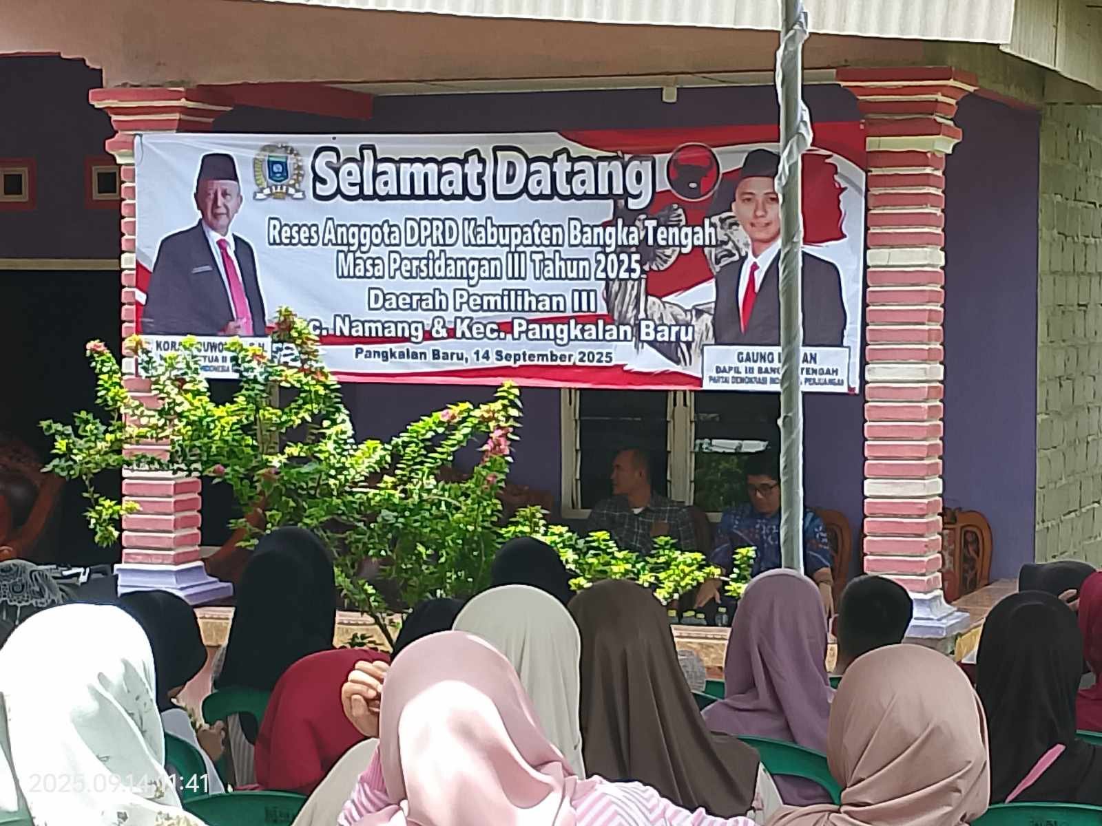 Pangkalan Baru — Kegiatan reses Masa Persidangan III Tahun 2025 yang digelar oleh Wakil Ketua II DPRD Kabupaten Bangka Tengah, H. Korari Suwondo, S.H., bersama Anggota DPRD dari Dapil III, Gaung Legian, berlangsung hangat dan interaktif. Bertempat di Kelurahan Dul, Kecamatan Pangkalan Baru pada Minggu, 14 September 2025, reses ini dihadiri ratusan warga dari Kecamatan Namang dan Pangkalan Baru.