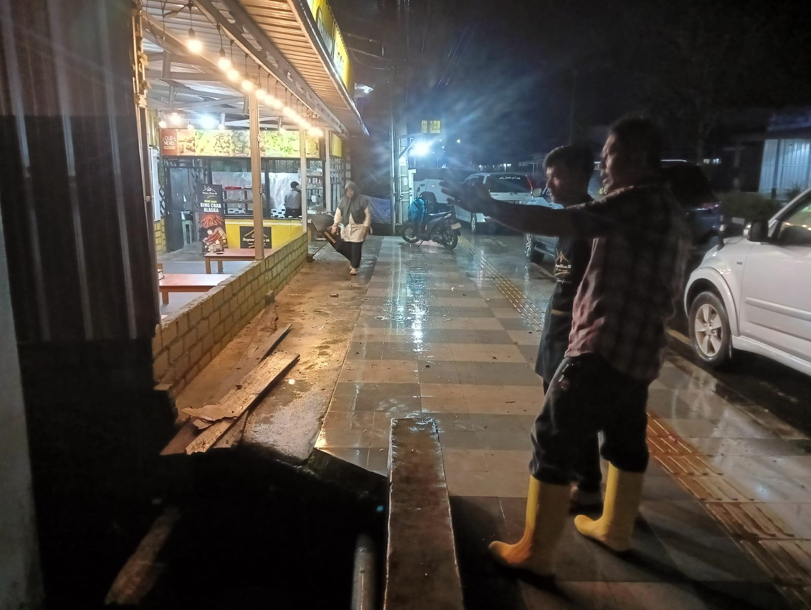 Peristiwa tersebut terjadi setelah hujan dengan intensitas tinggi mengguyur wilayah itu sejak sore hari. Debit air yang meningkat drastis membuat saluran pembuangan tidak mampu menampung aliran, sehingga air meluber ke badan jalan dan permukiman warga sekitar.
