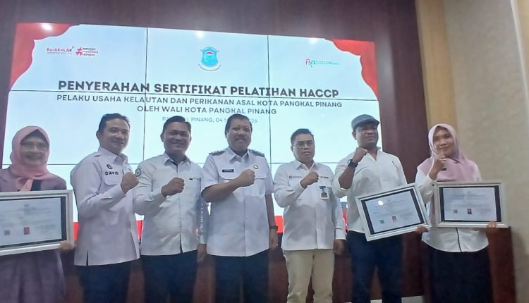 MATAKASUS.COM|PANGKALPINANG — Pemerintah Kota Pangkalpinang memperkuat kualitas produk perikanan dengan mempercepat proses sertifikasi dan peningkatan kompetensi pelaku usaha. Langkah tersebut dilakukan melalui kegiatan pelatihan jaminan mutu yang diikuti sembilan pelaku usaha pengolahan hasil perikanan di Ruang SRC Kantor Wali Kota Pangkalpinang, Rabu (4/3/2026).