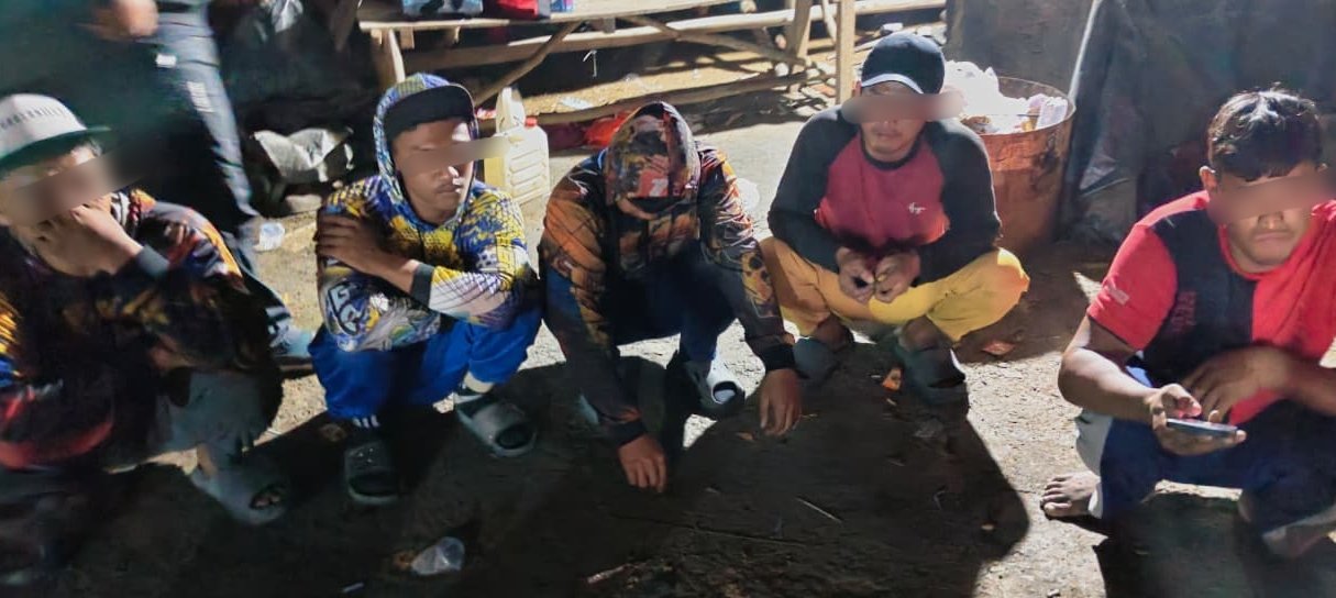 Lokasi yang tersembunyi jauh dari permukiman itu ternyata menjadi “dapur produksi” timah balok ilegal. Saat digerebek, petugas mendapati lima pekerja tengah menjalankan proses peleburan pasir timah. Mereka masing-masing berinisial J (22), W (33), T (23), D (21), dan H (26).