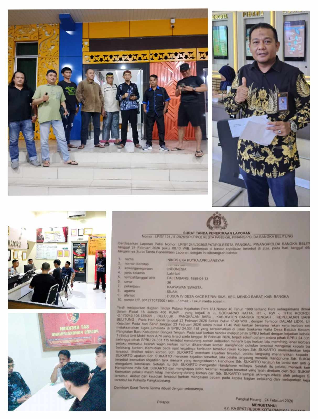 Matakasus.com, Pangkalpinang — Upaya konfirmasi jurnalistik terkait insiden kebakaran di SPBU 24.331.115 (SPBU Kejora) justru berujung pada dugaan kekerasan fisik, intimidasi, dan perampasan alat kerja wartawan. Dua jurnalis yang tengah menjalankan tugas profesinya dilaporkan menjadi korban tindakan represif oleh oknum di lokasi. Selasa (24/2/2026).
